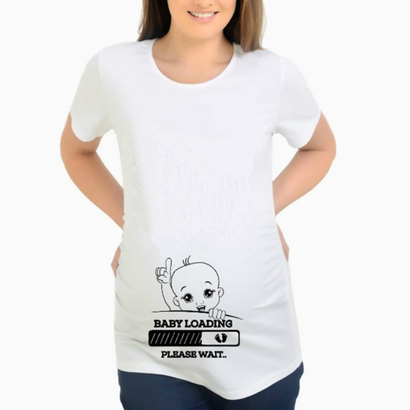 Maternity Summer Loading Tummy Body Funny Custom Short Sleeve T-Shirt Black Print