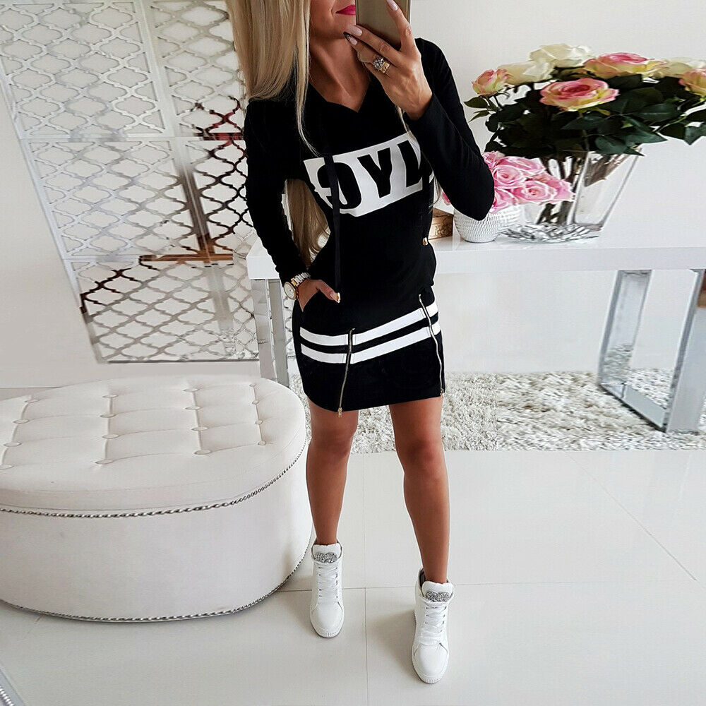 Women's Street Fashion Hooded Slim Fit Long Sleeve Sweater Dress with Pockets
