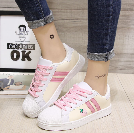 Womens/Girls Fashion Trendy Cute Kawaii Harajuku Strawberry Pink Low Top Lace up Canvas Sneaker Shoes