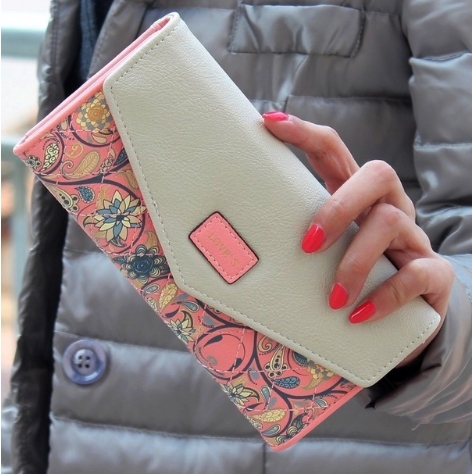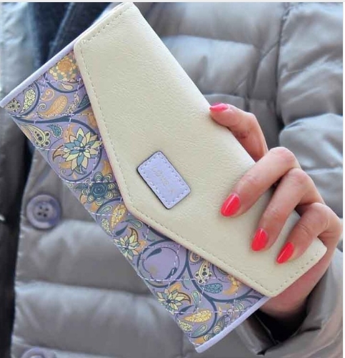Womens Fashion Padded PU Flower Pattern Clutch Wallet