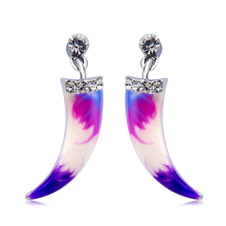 Womens Trendy Bohemian CZ Diamond Studded Tusk Earrings