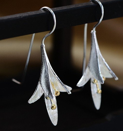 Girls/Womens Sterling Silver Magnolia Flower Fashion Trendy Earrings