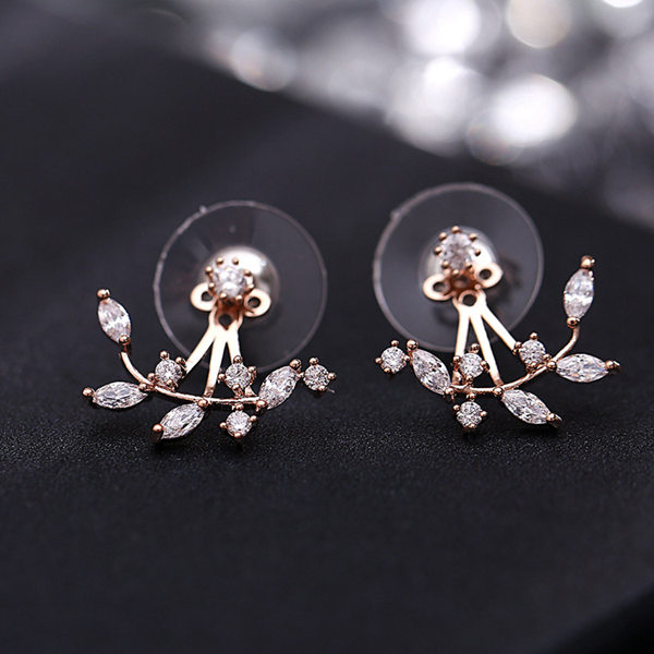 Girls/Womens Conifer Leaf Crystal Fashion Trendy Earrings