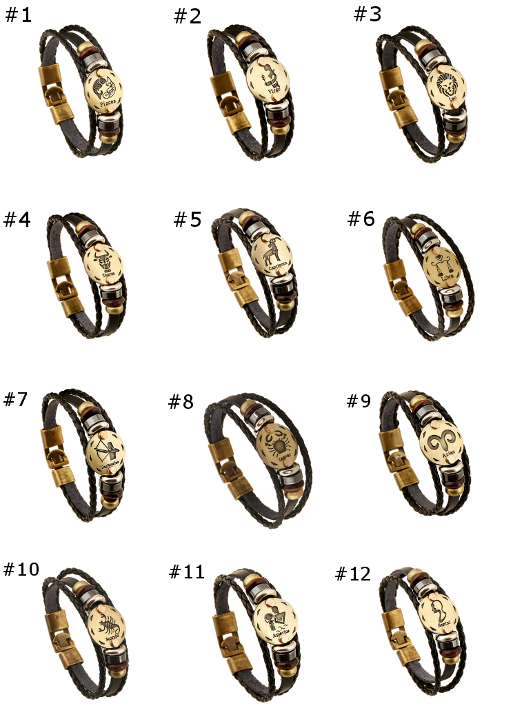 Handwoven Unisex Vintage Collection A2 Constellation Leather Wristband 2pcs