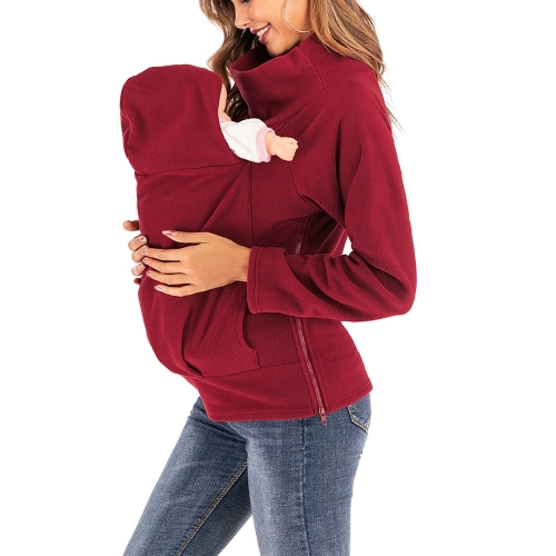 Maternity Baby Carrying Pouch Hooded Long Sleeve Sweater Red