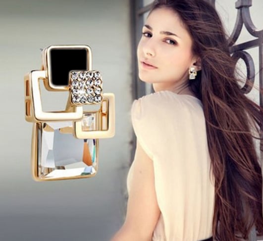 Womens/Girls Fashion Trendy Square Crystal Studded Earrings