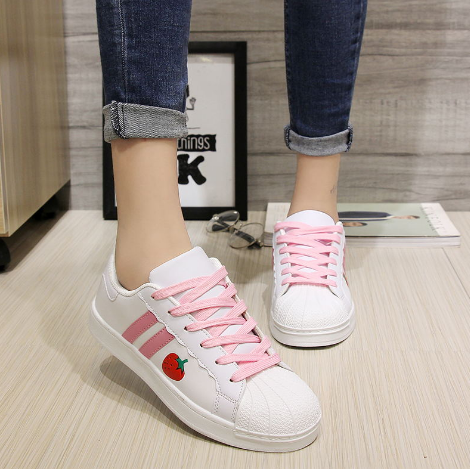 Womens/Girls Fashion Trendy Cute Kawaii Harajuku Strawberry Red Low Top Lace up Canvas Sneaker Shoes