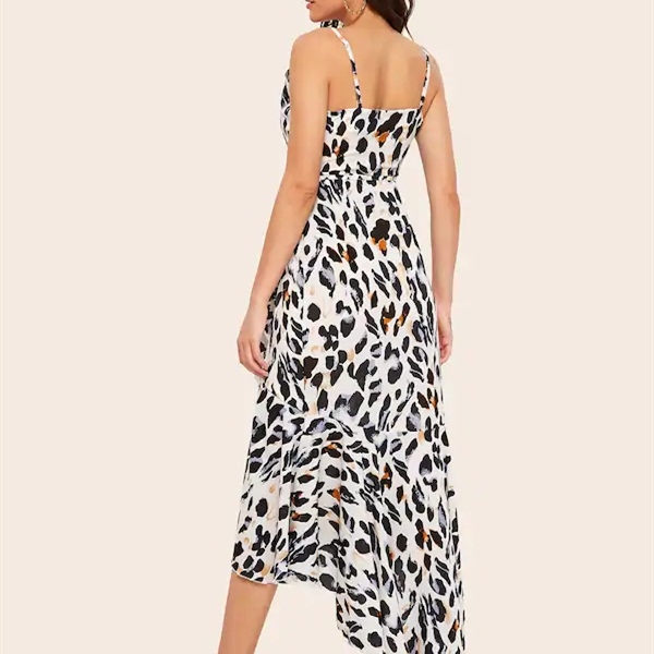 Womens Fashion Trendy Leopard Print Slim Fit Halter Back Long Dress