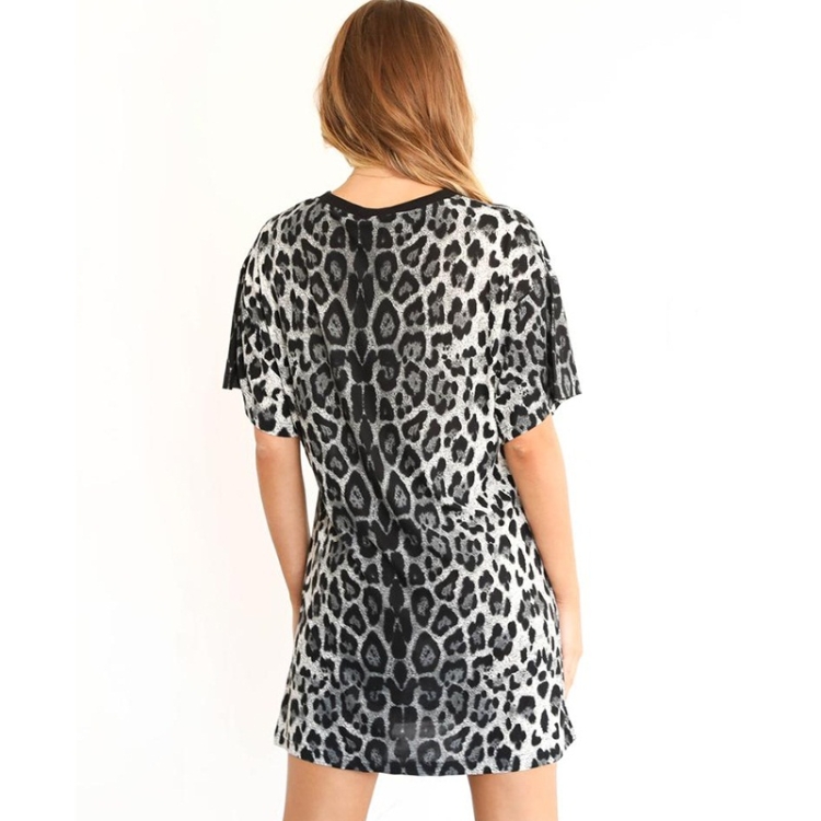 Womens Fashion Trendy Leopard Print Slim Fit Summer T-Shirt Dress